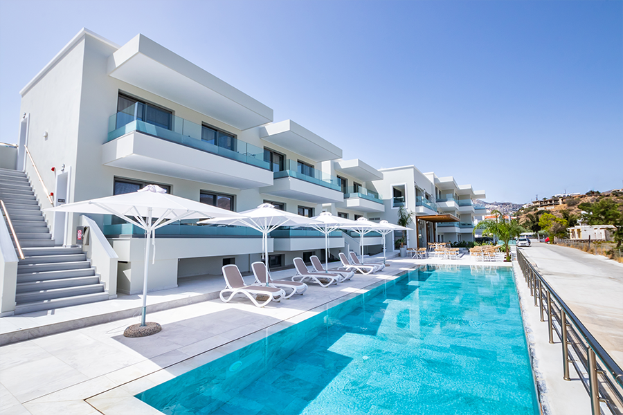 12 apartments & 2 apartments with private pool on each. Each apartment is 39 m2, and has one room and shower/WC. Room includes 1 double bed and a sofa bed which can be transformed into a double bed too. All deaturing: Air conditioning, hair dryer, direct dial telephone, 2XLCD tv (satellite), safety box, kettle, tea and coffee, Wi-Fi, housekeeping (every day except Sundays), towels, sheets are changed once every 2 days, fully equipped kitchen, French coffee machine, microwave, room service (upon request / payable).