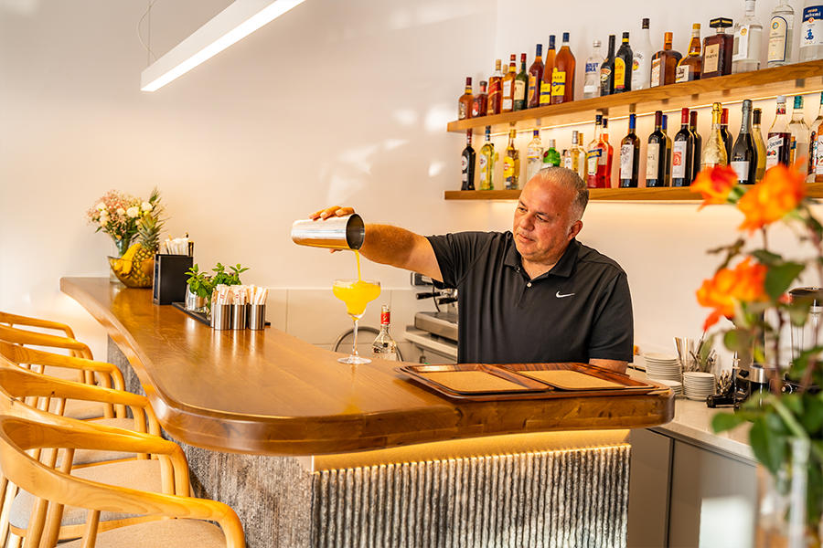 The beverages are served to the tables at the restaurant and bar. Guests can also help themselves.